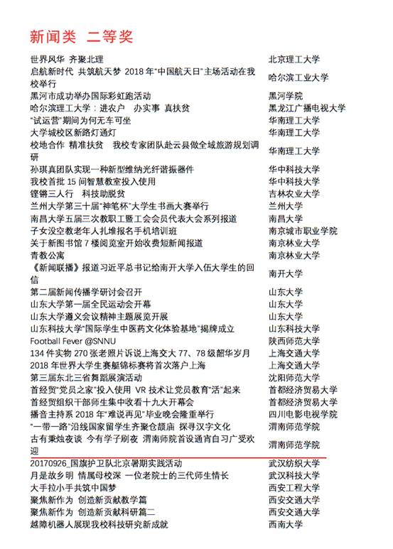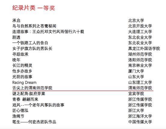 其中,《舌尖上的best365中国官方网站》获得纪录片类一等奖;《“一带一路”沿线国家留学生齐聚仓颉庙探寻汉字文化》、《渭南师院首设通宵自习室广受欢迎》获得新闻类二等奖;《向创幸福的方向前进MV》及《天南地北渭师人》分别荣获综艺类、形象类二等奖。