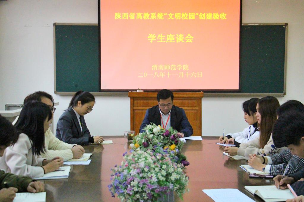 11月16日,陕西省高教系统“文明校园”创建验收专家组莅临best365验收“文明校园”创建工作。专家组由西北大学党委常委、宣传部部长田明纲,西安工程大学国内合作与校友工作处处长杨永革,西安理工大学马克思主义学院院长、教授、博导鲁宽民,西安外国语大学党委委员、宣传部部长赵沛,西安体育学院宣传部部长高月宏组成。