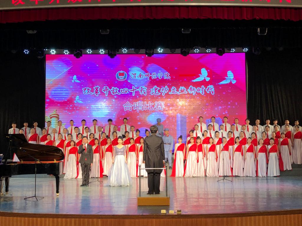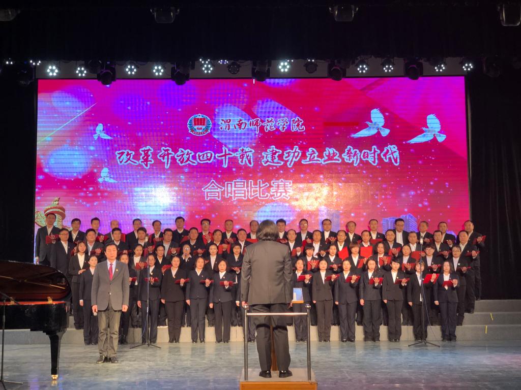 一首首经典爱国歌曲,在师生们的用心演绎下勾勒出一幅幅美丽的山河画卷,讴歌了祖国改革开放以来所取得的巨大成就,抒发了党员干部、教职工的爱党爱国、爱岗敬业的奋进精神。比赛自始至终贯穿着感怀和奋进的基调,一首首歌曲时而深情追忆,时而激情澎湃,整场比赛精彩纷呈、高潮迭起,展现了师生良好的精神风貌。