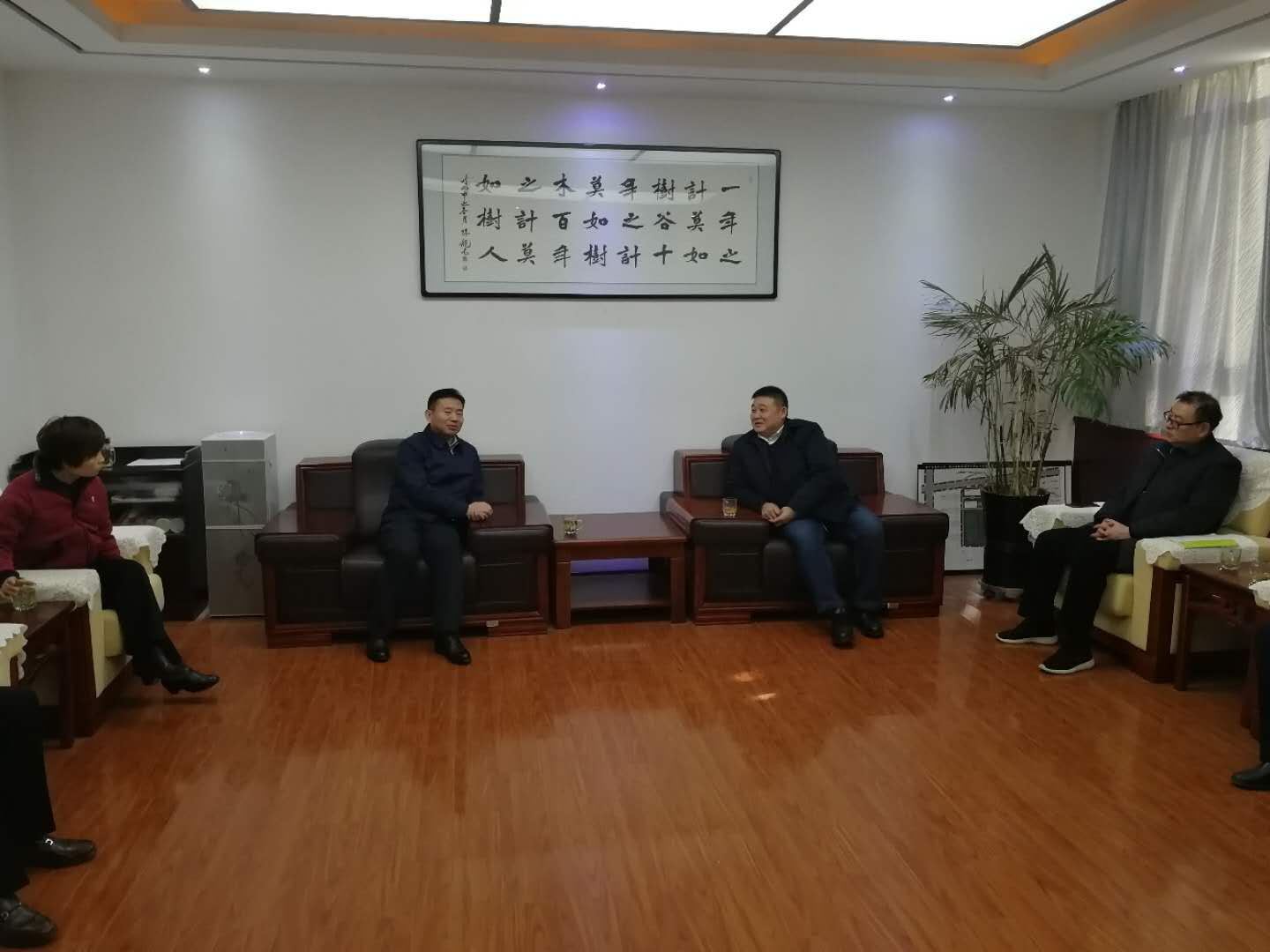 卓宇一行与白水县委书记周庆文、白水县人民政府副县长胡小英、教育局局长屈玉虎在白水县教育局会议室召开校地结对帮扶联席会议,回顾总结2018年校地结对帮扶工作开展情况,对接商谈2019年校地结对帮扶工作计划。
