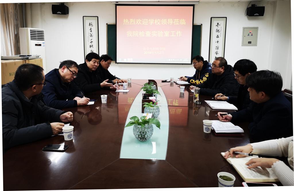 1月2日下午,党委副书记任健,副院长程书强一行到数理学院,化学与材料学院专项检查实验室安全工作。实验设备管理处处长杨利民,稳定办主任李铁丁等陪同检查。