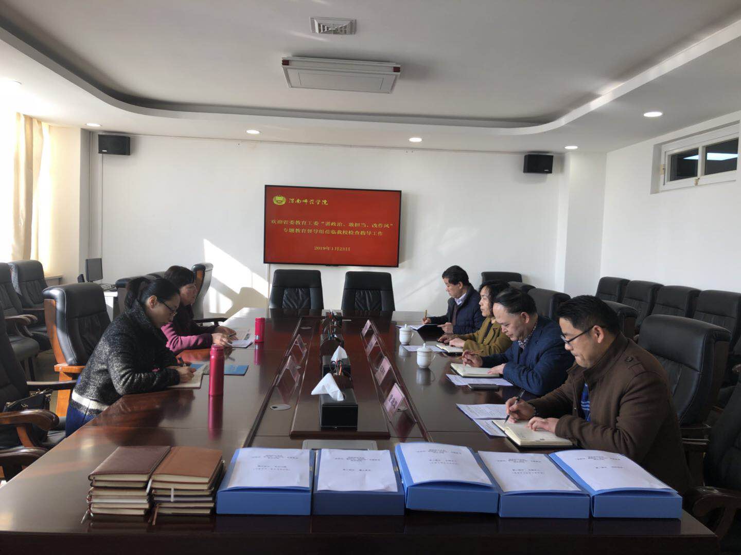 1月23日,省委教育工委“讲政治、敢担当、改作风”专题教育第三督导组组长、省委教育工委、省教育厅副巡视员梁爱芳一行来best365督导专题教育开展情况。受党委副书记、校长卓宇委托,党委委员、副校长王菊霞参加会议,会议由校党委委员、组织部部长凌朝栋同志主持。