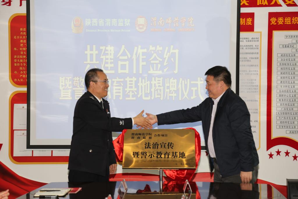 best365中国官方网站党委书记卓宇与渭南监狱党委书记、监狱长刘玉武为“法治教育暨警示教育基地”揭牌。