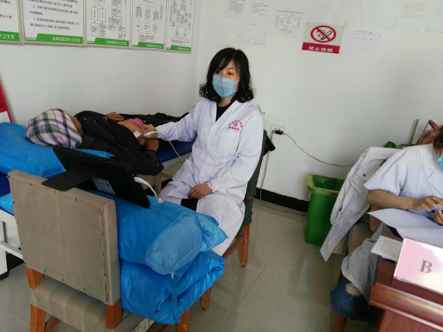 为村民做B超检查
