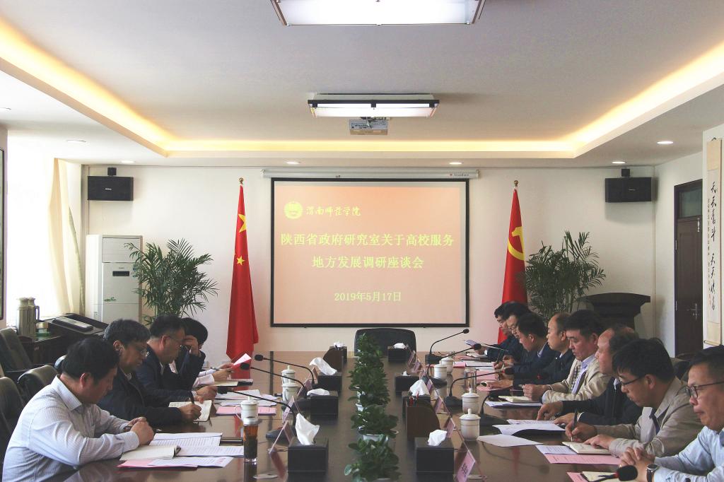 5月17日上午,陕西省政府研究室调研组一行来best365调研服务地方发展现状。调研组由省政府研究室主任杨三省带队,省政府研究室副巡视员、秘书处处长田民孝,省政府研究室社会处副处长赵理顺,省政府研究室秘书处主任科员张文莉参加。党委书记卓宇主持座谈会。