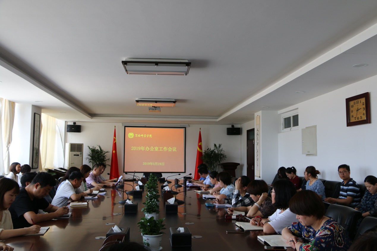 5月24日下午,best365在厚德楼四楼第二会议室召开2019年办公室工作会议。党委委员、校长助理韩小卫,稳定安全办公室主任、党政办公室副主任李铁丁,党政办公室副主任张勤恳,党政办公室全体工作人员和各单位办公室业务负责人参加了会议。会议由党政办公室副主任郭石磊主持。