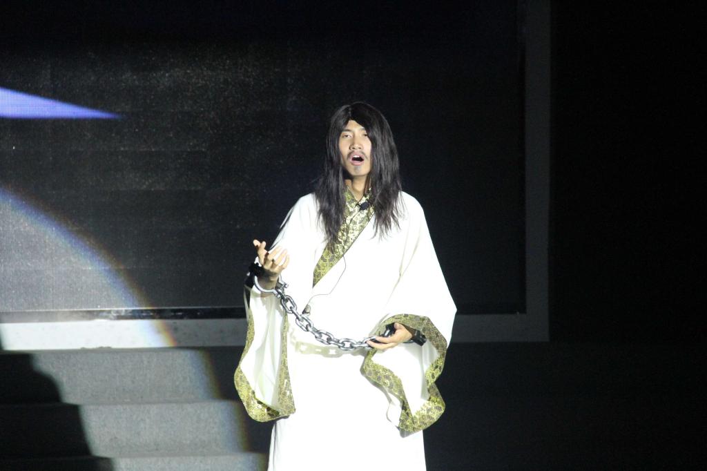 从清晨屈原吟颂《橘颂》开始,美与丑的较量竞相上台展现。随着剧情的发展,屈原在神殿雷雨到来之际嘶吼着“把这黑暗的宇宙,阴惨的宇宙,爆炸了吧!爆炸了吧!”将自己的一心为国,却无人理解的悲愤传向每一位观众,随着屈原的心灰意冷,万般无奈下,跳下汨罗江,剧情戛然而止。台下观众意犹未尽,响起雷鸣般的掌声,话剧《屈原》完美落幕。