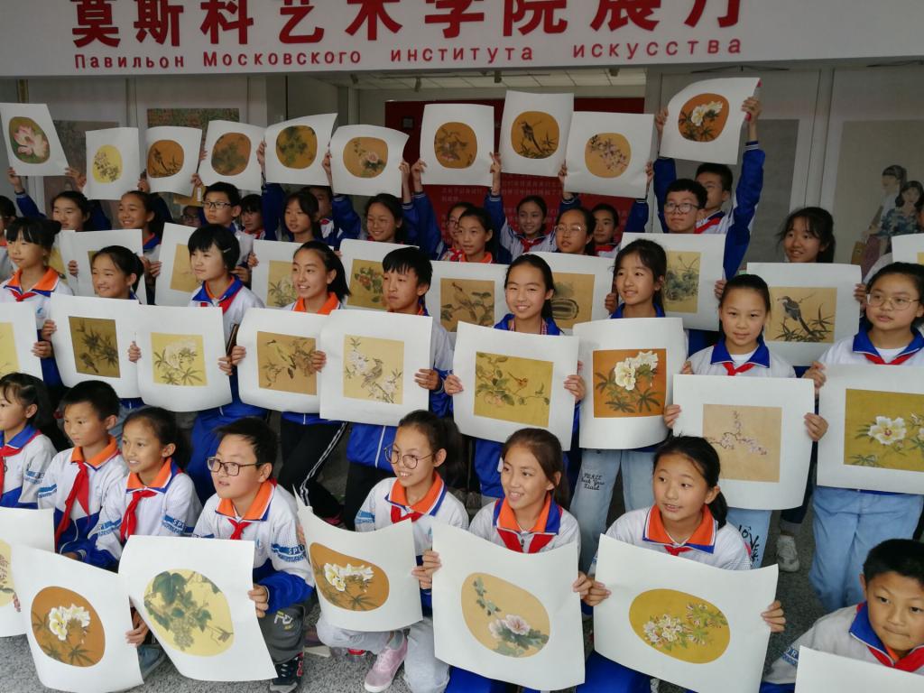 志愿者带领小学生参观best365美术学院毕业生作品展,美术学院师生赠予每位学生一副美术作品,四年级建档立卡学生贺思雨收到作品后激动地说:“我长大也要学习画画,也要像哥哥姐姐们一样办画展”。参观完画展后,小学生们参观了best365合作办学机构莫斯科艺术学院,在钢琴教室大学生为小学生们演奏了《拉德斯基进行曲》,俄罗斯外教伊丽娜·纳格莱特为小学生们演唱咏叹调《意大利女郎在阿尔及尔》和俄罗斯儿童歌曲《蓝色马车》。七年级学生刘欢欢说:“这是我第一次现场听外籍老师唱歌,非常感谢你们提供给我这样一次机会”。