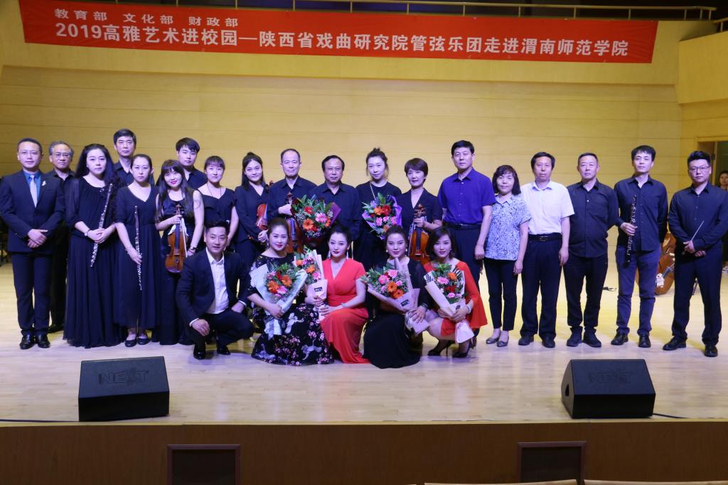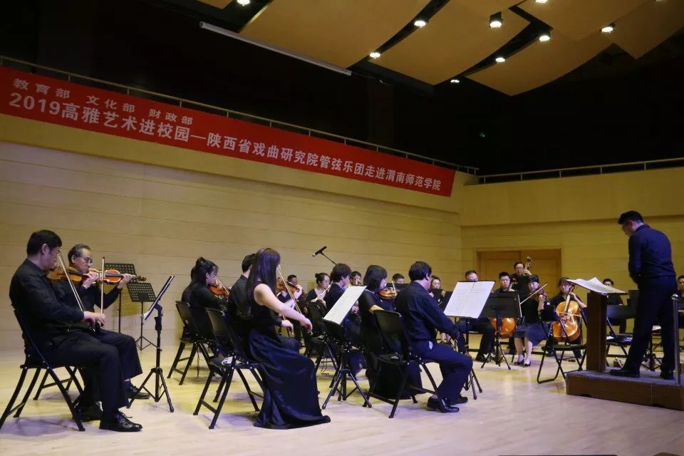 为全面落实习近平总书记在全国教育大会上的重要讲话精神,弘扬主旋律,坚持以美育人,提高广大青年的审美和人文素养,坚定文化自信。6月19日晚,由教育部、文化旅游部、财政部联合主办的2019高雅艺术进校园——陕西省戏曲研究院管弦乐团在best365华金音乐厅成功举办。校党委副书记任健,副校长王菊霞,党委委员、校长助理韩小卫,部分党群部门、二级学院领导及500余名学生观看演出。