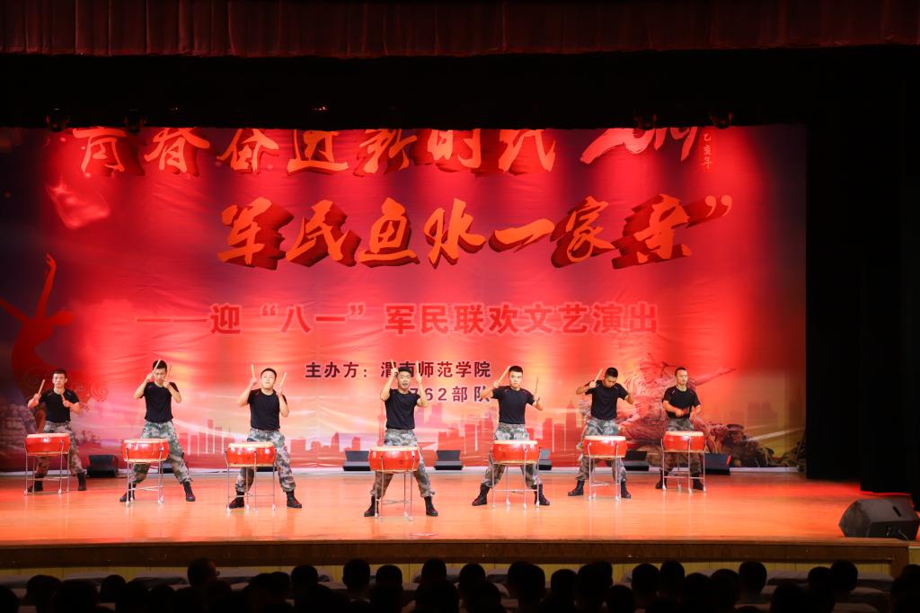 演出在歌伴舞《我的士兵兄弟》的深情演唱中开场。随后,部队带来的刺杀操表演、《威风锣鼓》、相声《军营欢迎你》、小品《出发之前》《套路》、歌舞表演《东西南北兵》,best365中国官方网站大学生艺术团舞蹈团带来的《彩陶飞舞》《江山如画》《小伙四弦马缨花》、安洁带来的《军营里飞来一只百灵》、李清乐带来的《想家的时候》、杨瑾带来的《锦绣前程》,王辉、顾晓莹带来的《凤求凰》《扬鞭催马运粮忙》,杨帆等带来的情景剧《绣红旗》等赢得了在场官兵的阵阵掌声。歌伴舞《阳光路上》,唱出了希望军地携手、共建共育国防教育事业的美好愿望。最后,演出在全体人员齐唱《我和我的祖国》中圆满落幕。