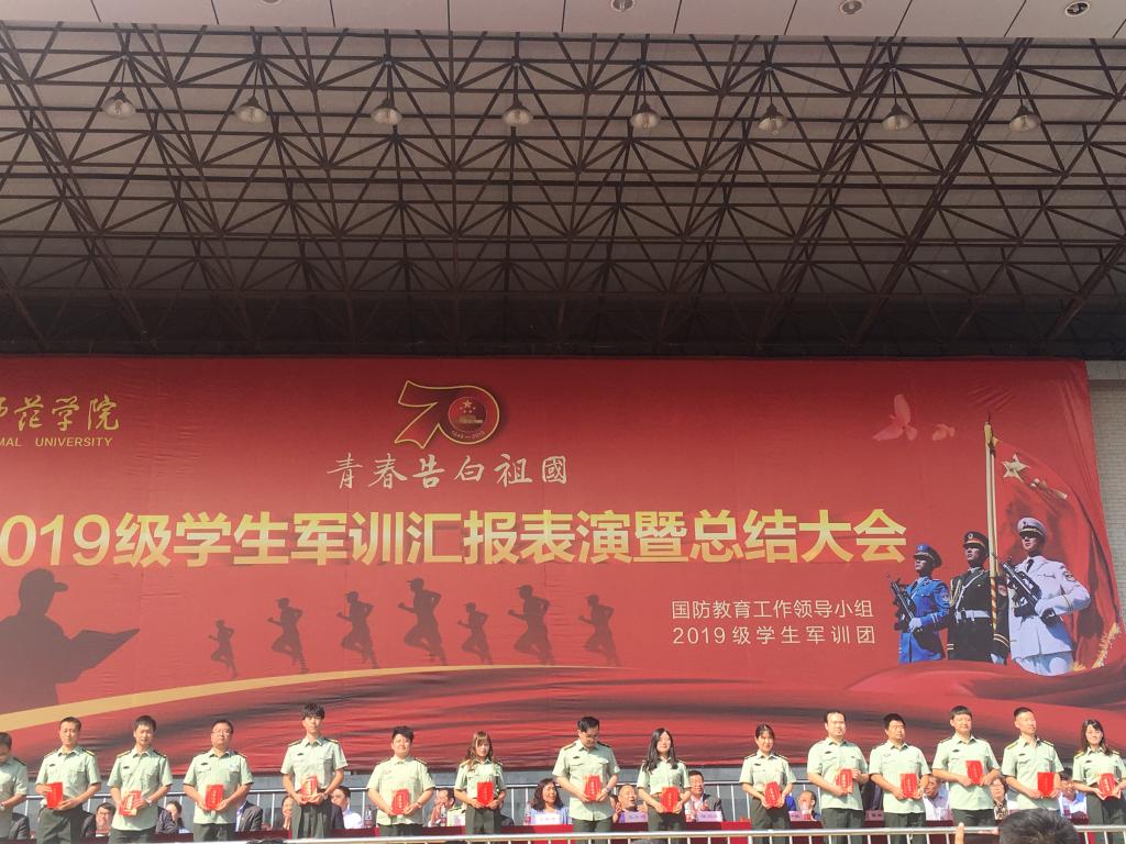 表演结束后,学生代表人文学院汉语国际教育191班刘宛嘉同学发言,她代表所有参训学生,向在军训中辛苦付出的教官们致以崇高的敬意和深深的感谢!她表示在接下来的大学时光中,一定会以军训精神严格要求自己,用梦想创造可能,用理想浇灌希望,用知识报效祖国,不忘初心、牢记使命。努力实现中华民族伟大复兴的中国梦!