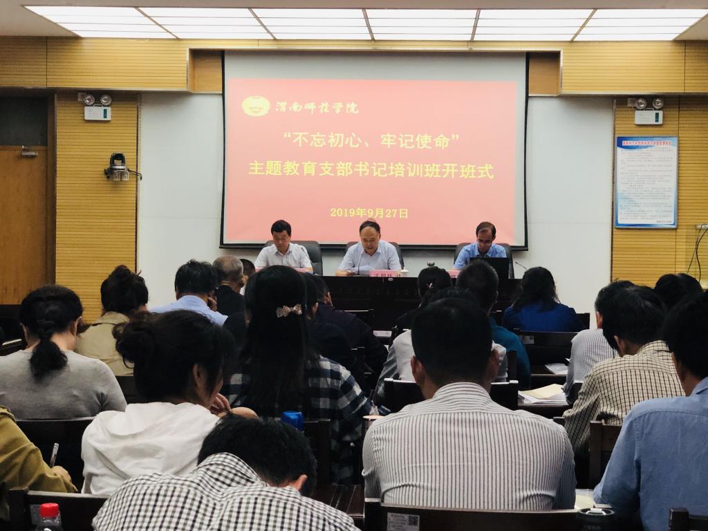 为提升基层党建工作水平,进一步加强基层党组织书记的党性修养、理论水平、业务素质和工作能力,根据学校党委“不忘初心、牢记使命”主题教育安排。9月27日下午,学校在逸夫楼科学大讲堂举办“不忘初心、牢记使命”主题教育党支部书记培训班开班式,党委委员、组织部部长凌朝栋出席开班式并作动员讲话。渭南市委组织部组织三科科长张增辉做专题解读。开班式由组织部副部长武江波主持。