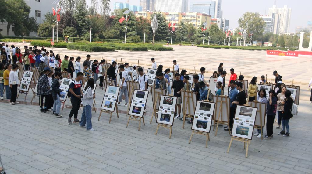 据了解,展览从9月27日持续至10月7日。展览选取中华人民共和国成立70年以来,共和国在中国共产党坚强领导下,战胜各种艰难险阻,谱写了波澜壮阔的社会主义革命、建设、改革的壮丽诗篇。此次图片展览以编年体为时间主线,分为“站起来”“富起来”“强起来”三个篇章,选取五十余幅图片,深刻展现出在中国共产党领导下中国人民取得伟大成就,展现出党领导我国社会主义制度集中力量办大事的政治优势,充分展现出了我国道路自信、理论自信、制度自信和文化自信。另外,展览还专门选取学校建校、升本等在教育教学、校园文化、学生活动重要事件和学校发展历程中的图片,展现渭师人在共和国发展历程中,为学校发展所付出不懈努力和巨大成就。