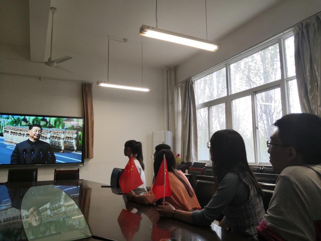 10月1日上午,学校高度重视、积极组织师生员工共同收看庆祝新中国成立70周年庆祝大会现场直播,聆听习近平总书记重要讲话。