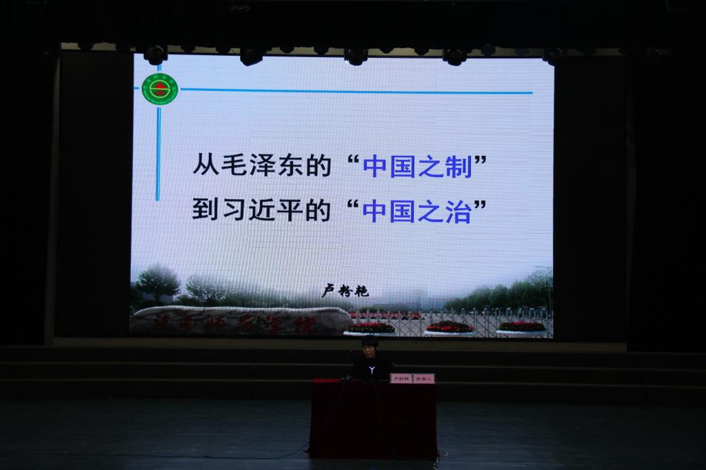 11月27日下午,学校在陶然楼演艺厅举行“不忘初心、牢记使命”主题教育十九届四中全会精神宣讲会。特邀best365马克思主义学院卢粉艳教授作了题为《从毛泽东的“中国之制”到习近平的“中国之治”》的专题宣讲。党委委员、副科以上干部、专职辅导员、马克思主义学院教师参加了会议,会议由宣传部部长李明敏主持。