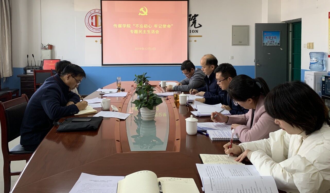 12月3日下午,传媒学院党总支召开“不忘初心、牢记使命”主题教育处级领导班子专题民主生活会。学校党委委员、副校长韩小卫全程指导,学校主题教育第四督导组组长高敏芳督查点评。
