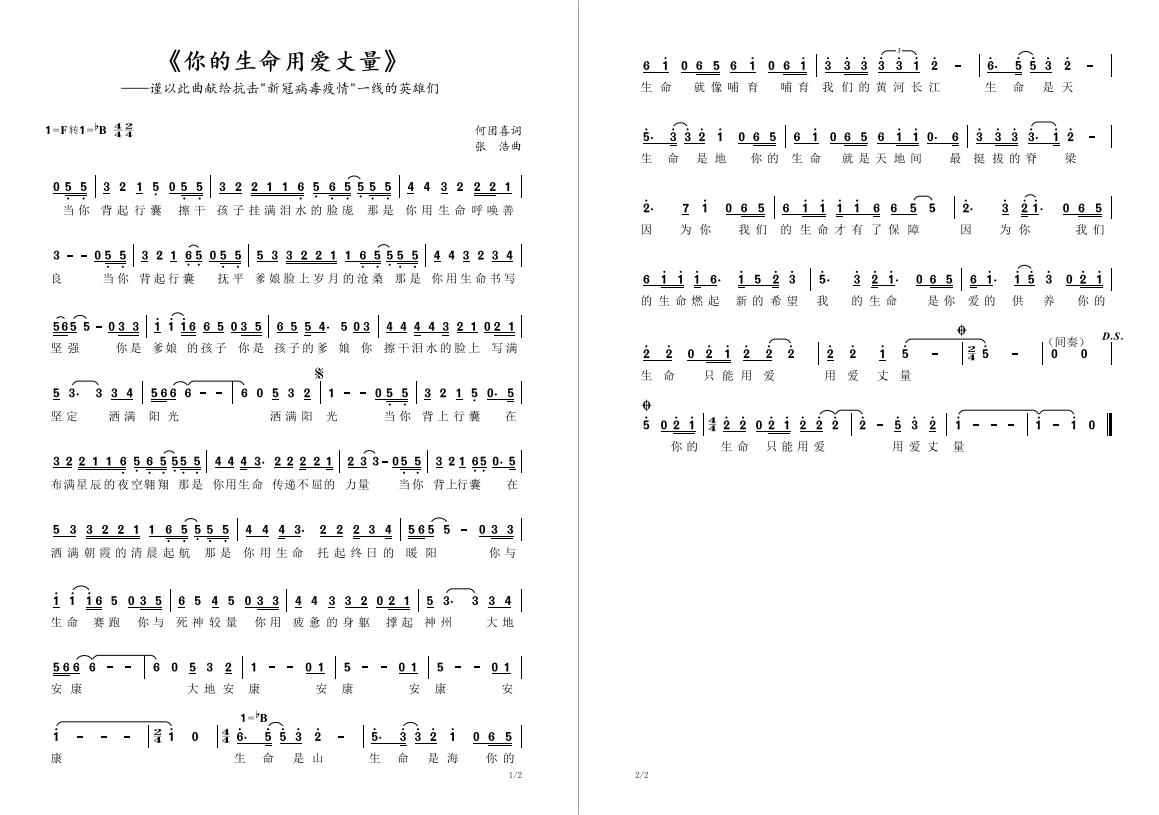 “你是爹娘的孩子,你是孩子的爹娘”,“生命是山,生命是海,你的生命就像哺育我们的黄河长江;生命是天,生命是地,你的生命就是天地间最挺拔的脊梁”,生动感人的歌词、真挚的曲调,是歌曲创作者们对所有敢于同疫情做斗争的英雄们的热情讴歌!每一句歌词,都是颂扬正在发生的感人故事,每一段旋律,都表达了对奋战在抗疫一线工作者的敬意,用温暖感人的旋律和歌词,为这场没有硝烟的战“疫”注入了满满的正能量。