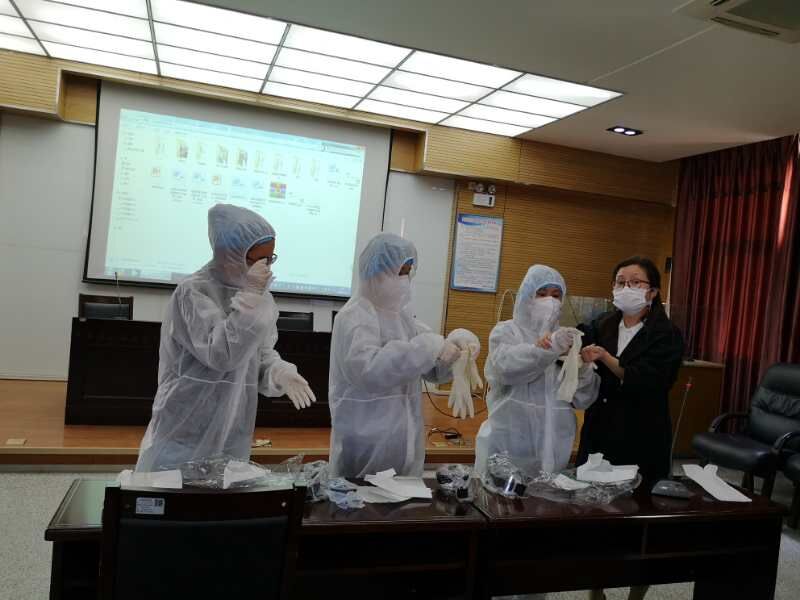 学校附属医院邀请渭南市临渭区疾控中心传防科张少娟为全体辅导员进行了消杀常识和个人防护、个人卫生和七步洗手法的现场演示,现场邀请辅导员上台演示穿脱防护服。