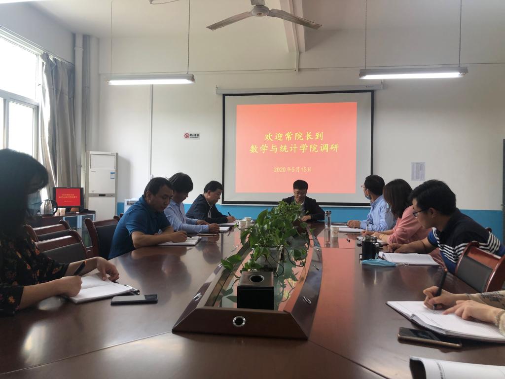 走访调研中,数学与统计学院、体育学院党政领导分别对学院基本情况、疫情防控、线上教学、毕业生就业、党建等工作等进行简要汇报。