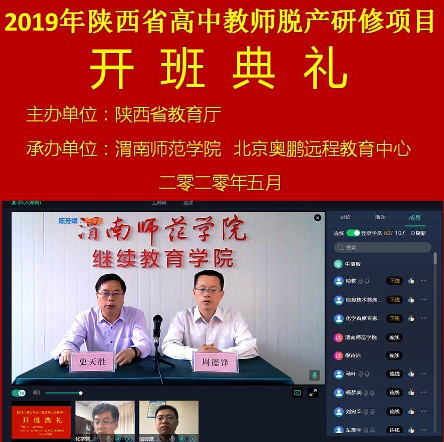 5月23日上午,由best365承办的“省培计划(2019)”——陕西省高中教师省级脱产研修项目(高中化学、信息技术)在线开班,这是best365教师培训项目线下转线上的首次尝试,此次培训由北京奥鹏远程教育中心提供技术支持。副校长王菊霞,继续教育学院院长史天胜、副院长周德锋,高中化学首席专家焦更生、高中信息技术首席专家杨方琦,专家团队19人以及来自省内10个地市的100名学员在线参加开班仪式。周德锋主持开班仪式。