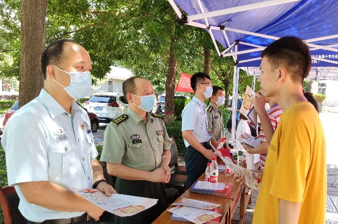 6月18日上午,best365在一餐门前举行2020年大学生征兵宣传咨询活动,特邀渭南军分区动员处处长沈礼军、临渭区武装部政工科科长张磊等一行十余人来best365为大学生讲解宣传2020年征兵相关政策,best365先后有五百余名大学生前来咨询了解相关政策。