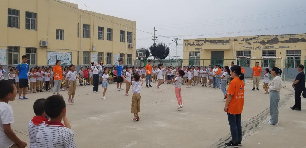 实践队员在仓颉第一小学组织跳绳比赛