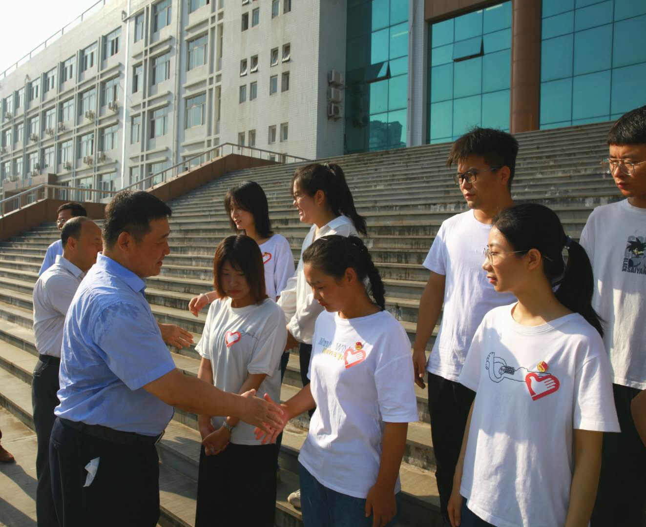 在学校厚德楼前,学校主要领导分别与今年入选best365西部计划的20名志愿者逐一握手,询问志愿者所学专业、参加志愿者体会、服务岗位状况和困难需求,叮嘱赴新疆服务的志愿者加强学习、相互关照。志愿者们介绍所赴岗位,简单介绍参加西部计划的感受。best365西部计划志愿者传媒学院李彩彩同学说:“感谢学校培养,领导关心,谨记老师叮咛,服从组织安排,加强学习实践,提升服务水平和能力,到基层奉献青春力量。”在座谈会上,经济管理学院刘泽朕同学作为即将赴岗志愿者作了发言,他说:“感谢学校的培养之情,自己牢固树立宗旨意识,弘扬志愿精神,尽己所能服务基层;力戒“镀金心态”“无为心态”,到岗后做好每件事,尽好每项责,在志愿服务西部中提升自身素质,树立志愿者和母校的良好形象。”体育学院周涛同学代表赴新疆志愿者发言中感慨:“新疆志愿久,此地即为家。山色青如染,江流碧似霞。风回秋浦树,云起晚窗花。新疆志愿重,旧业事堪哀。日月悬金殿,风云拥玉台;江山留霸气,草木动秋怀。”表达对参加志愿者的决心和信心,也表达了对母校留恋之情。