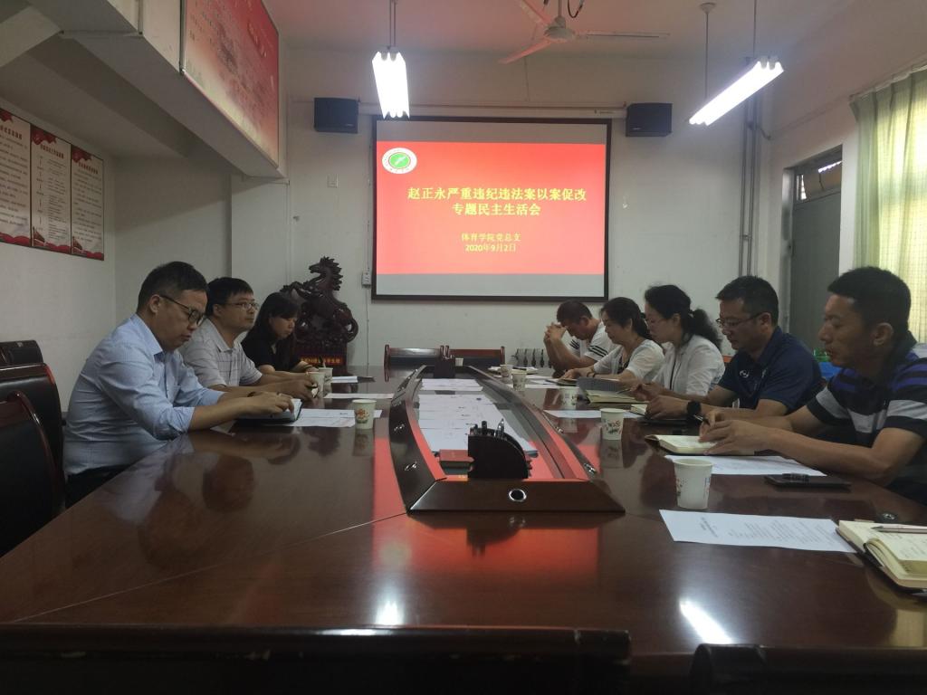 9月2日上午,体育学院党总支在学院会议室召开赵正永严重违纪违法案以案促改专题民主生活会。学校党委委员、副校长常青林出席会议,第四督导组李明敏、张晓多列席督导,学院领导班子全体成员参加会议。会议由学院党总支书记田耿辉主持。