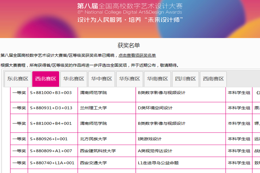 据悉,第八届全国高校数字艺术设计西北赛区,由来自北方民族大学、新疆师范大学、兰州理工大学、西安交通大学等79所高校的3192支代表队参赛。