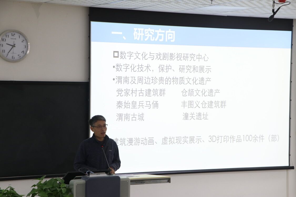贺宏福作了题为《文化遗产三维数字化实践》的报告,他从三维数字化的研究方向、技术条件、技术路径、应用领域、前景展望五个方面阐述了best365应用三维数字化技术,保护、展示和传承渭南周边珍贵文化遗产的实践经验。
