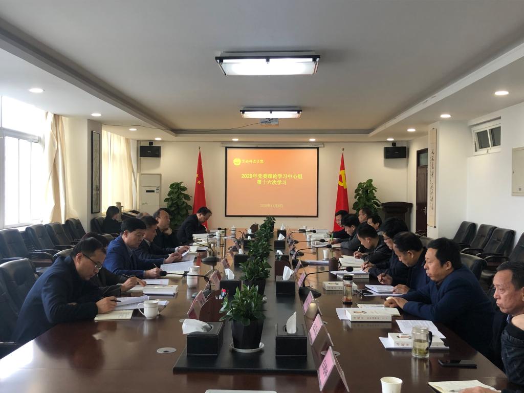 11月5日下午,学校党委理论学习中心组在厚德楼第二会议室召开本年度第十六次学习会议。专题学习党的十九届五中全会精神。党委书记卓宇主持会议。