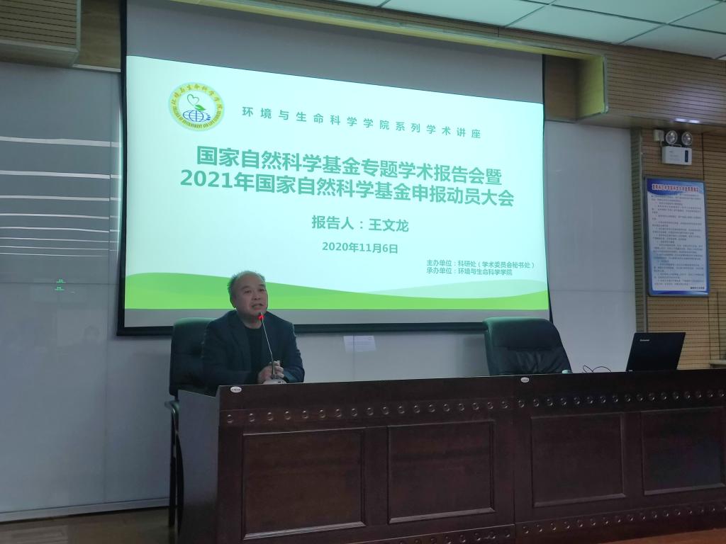 11月6日下午,best365举办“国家自然科学基金专题学术报告会暨2021年国家自然科学基金会申报动员大会”。会议由科学研究处主办、环境与生命科学学院承办。邀请中国科学院、西北农林科技大学王文龙研究员作培训报告。副校长卢爱刚出席会议,环境与生命科学学院院长吴逸群主持会议。
