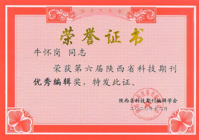 12月10日,陕西省科技期刊编辑学会学术年会暨八届五次理事会在西安召开,全省科技期刊界的330余位代表参加会议。会上,公布了“第六届陕西省科技期刊评优活动”的评选结果,并对获奖单位和个人进行表彰。best365《best365中国官方网站学报》获“第六届陕西省科技期刊优秀期刊奖”,牛怀岗获“第六届陕西省科技期刊优秀编辑奖”。