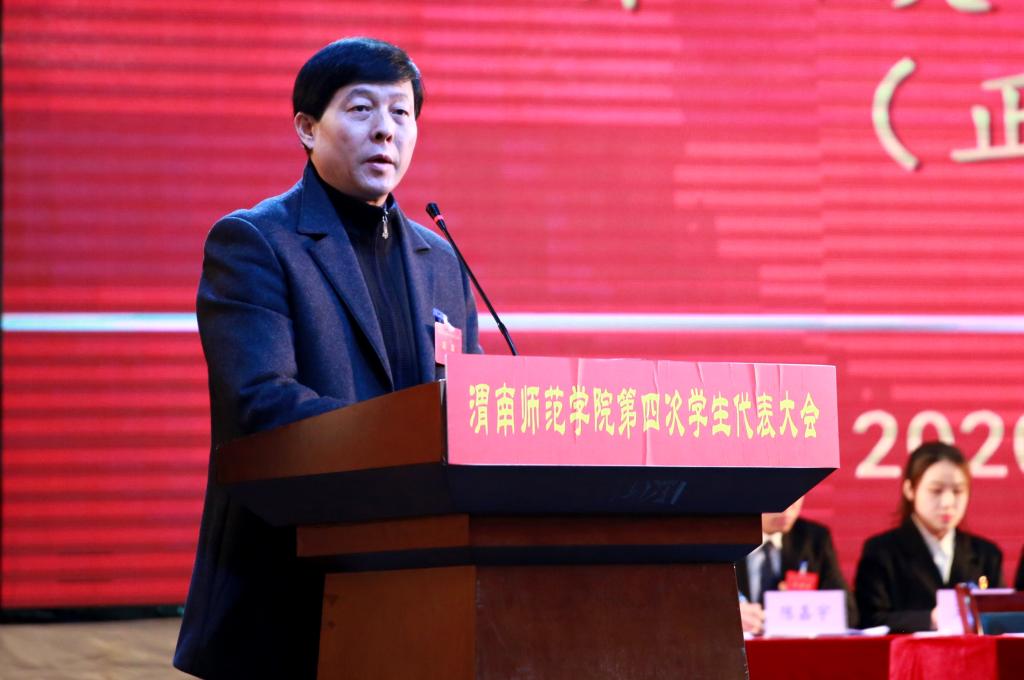 党委副书记任健代表学校党委向大会的胜利召开和即将选举产生的新一届学委会委员表示热烈祝贺。他充分肯定了第三次学代会以来,best365各级学生会组织在各项工作中取得的成绩,他希望大家立鸿鹄志、坚定不移,做中国特色社会主义共同理想的坚定信仰者与中华民族伟大复兴中国梦的忠实奋斗者;希望大家读万卷书,持之以恒,牢固树立终身学习的理念,积极参加社会实践,增强社会责任感,自觉担负起历史赋予当代青年的光荣使命;希望大家成栋梁才、千锤百炼,在千锤百炼中锻造能力、在全面发展中开发潜能,注意培养团队合作精神、注重塑造自我品格,实现德智体美劳相互促进、有机融合、全面发展;希望大家强组织力,臻于至善,多一些担当精神、多一些蓬勃朝气,把责任扛在肩上、让思想竞相迸发,多一些先锋意识、多一些坚持不懈,影响带动更多同学全面健康发展,多一些创新能力、多一些干事本领,善于实现制度、文化和行动的创新,使学生会组织和学生代表真正成为学校最具创新活力的群体,用行动和成就证明自己是无愧于时代的渭师人。