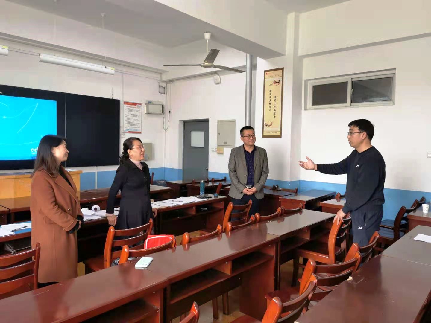 3月27日,学校开展新入职教师教学技能验收工作。副校长韩小卫对教学验收工作进行了检查,并与青年教师和评委进行了交流。