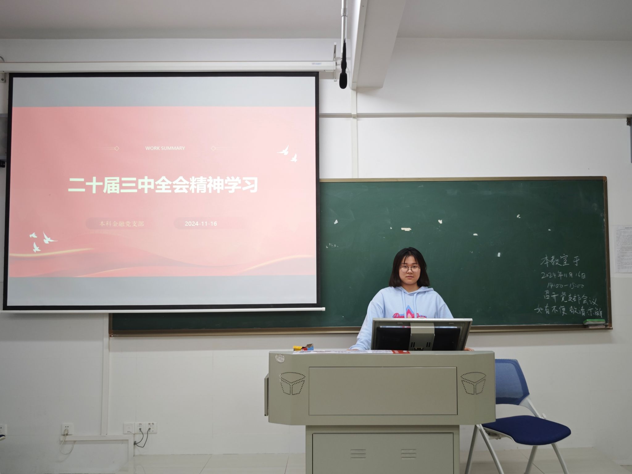 (通讯员 胡凌雁)11月16日下午,本科金融专业党支部在中和楼202教室开展了以“学习党的二十届三中全会精神”为主题的党日活动。