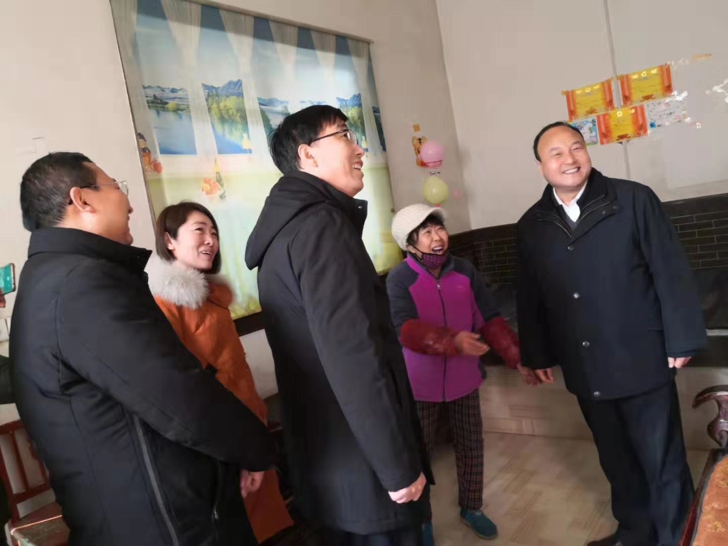 校长赵曼(右一)在龙门村慰问包联的贫困群众