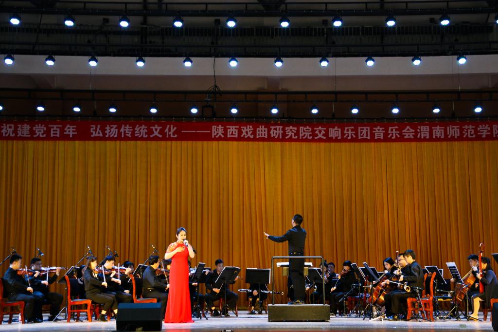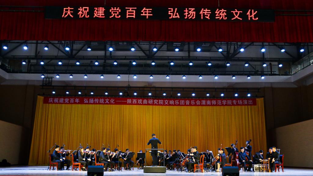 为庆祝党的百年华诞,大力弘扬优秀传统文化,4月27日下午,陕西戏曲研究院交响乐团音乐会best365中国官方网站专场演出在学校富平校区举办。党委副书记任健出席并观看演出,学工部、富平校区管委会、后勤服务中心、美术学院、传媒学院等相关部门负责人及师生代表共300余人现场观看聆听。