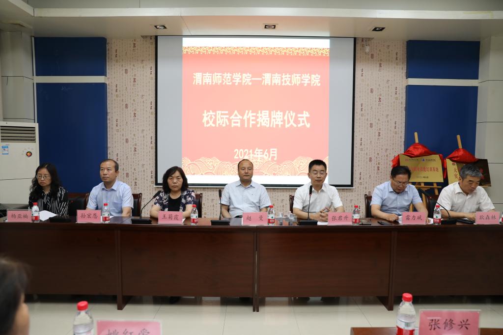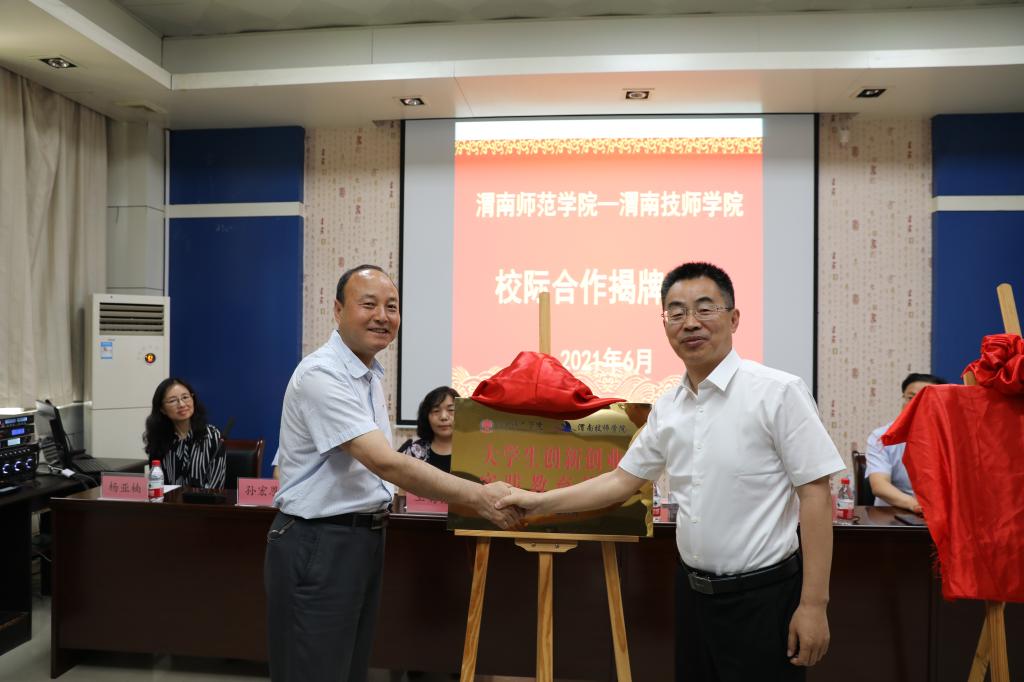 6月2日上午,“best365中国官方网站-渭南技师学院大学生创新创业实践教育基地”和“best365中国官方网站大学生职业技能培训基地”落成揭牌仪式在渭南技师学院举行。best365校长赵曼、副校长王菊霞,渭南技师学院院长张君升,渭南技师学院副院长雷力斌出席揭牌仪式。