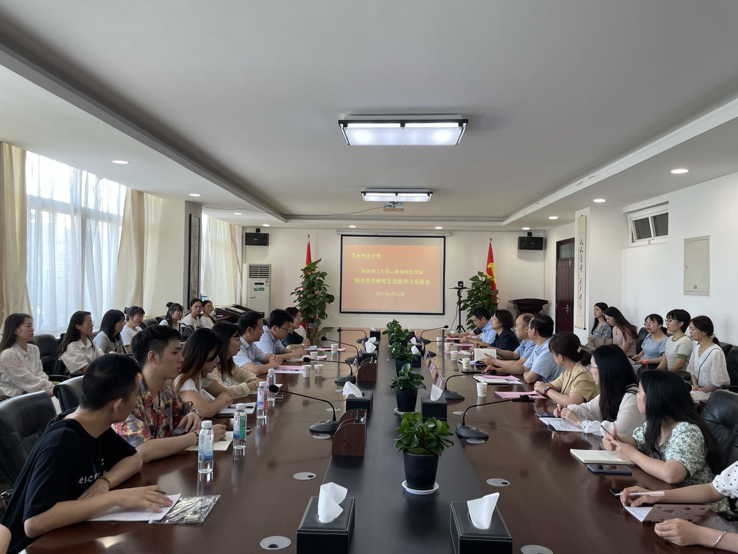 见面会上,李宜蓬介绍了陕西理工大学人文学院的发展概况和交流学习学生的基本情况,总结了两校联合培养研究生工作取得的突出成绩,他认为,两校研究生联合培养工作实现了双方师资的互补,促进了人才培养质量的提升。赵前明介绍了人文学院的基本情况和本次交流学习的教学组织安排,祝愿参加交流学习的学生学有所成,祝愿两校联合培养工作取得新的成绩。并代表全体研究生指导教师表态承诺:将会以满腔热情,努力工作,精心指导,不遗余力的为研究生的专业成长和个人发展提供帮助。