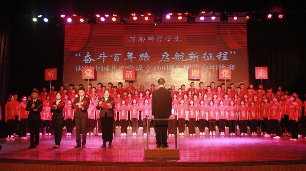 伟大历程璀璨如画,光辉岁月悠久如歌。本次师生合唱比赛是一场传承红色基因的歌唱盛典,也是一次党史学习教育的生动实践,更是新时代全校师生表达爱党、爱国、爱校之情的真情告白。合唱比赛的举行激励全校师生自觉从党的百年历程中汲取奋进力量,坚定初心使命,砥砺奋勇前行,以昂扬的精神状态和务实的工作作风推动学校各项事业高质量发展,向着建设特色鲜明的高水平地方师范大学而努力迈进!