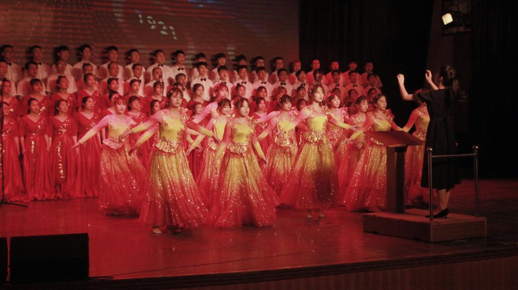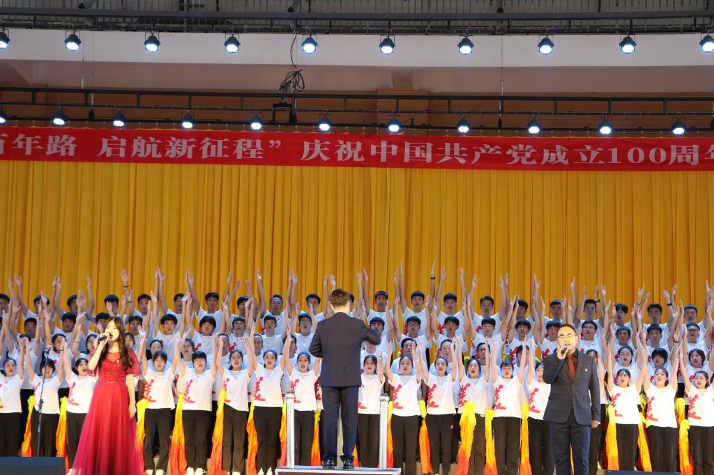 “不忘初心,满怀人民的向往;百炼成钢,脚步从容在路上。”比赛在音乐学院合唱表演的歌曲《向往》中拉开序幕;校领导以合唱队成员身份参加所联系学院的合唱比赛,全校13支二级学院参赛代表队饱含深情地演唱了《唱支山歌给党听》《共和国之恋》《我的祖国》《在灿烂阳光下》《不忘初心》《走向复兴》《共筑中国梦》等多首经典红色曲目;莫斯科艺术学院合唱表演的《百年之路》深情描绘了中国共产党带领中国人民“跨越百年,奔向前方,砥砺奋进,国强民富”的新时代蓝图;比赛在现场全体师生齐声高唱《没有共产党就没有新中国》的激昂旋律中落下帷幕。全校师生用歌声深情回顾党的百年光辉历程,用歌声唱出新时代的最强音。整场比赛高潮迭起,精彩纷呈,气势磅礴,赢得了观众的热烈掌声。