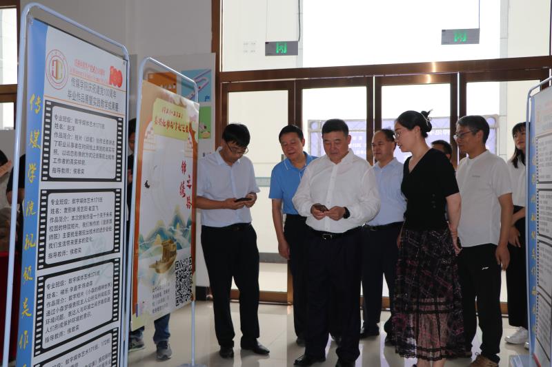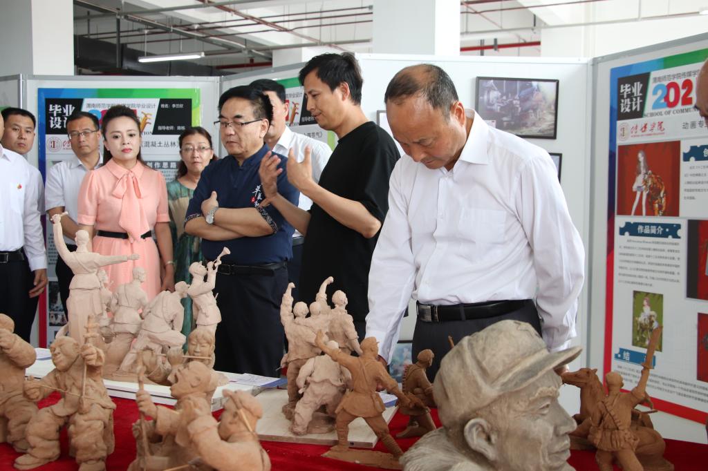 参观过程中,学校领导对本次展览工作及师生高质量作品给予以了充分肯定,对传媒学院把党建思想、党史学习、课程思政融入专业作品创作的模式,给予了高度评价。