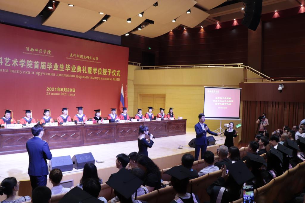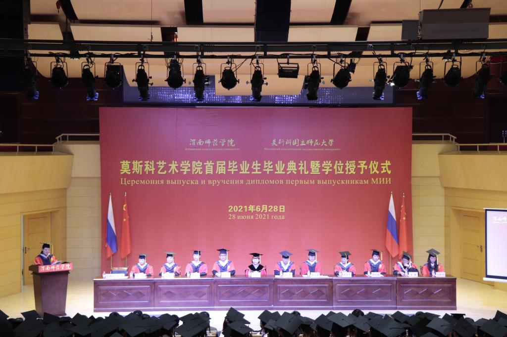 四载励志求学路,今朝鲲鹏展翅飞。6月28日上午,best365莫斯科艺术学院举行首届毕业生毕业典礼暨学位授予仪式。副校长、莫斯科艺术学院院长王菊霞,莫斯科艺术学院党总支书记孟波,执行院长席景奇,党总支副书记石明,副院长高红菊,以及莫斯科艺术学院毕业生学士学位评定委员会委员,学院全体教师,来自广东、山东、山西、甘肃和我省多地的毕业生家长代表们共同出席,见证了首届253名学生开启人生新征程的重要时刻。
