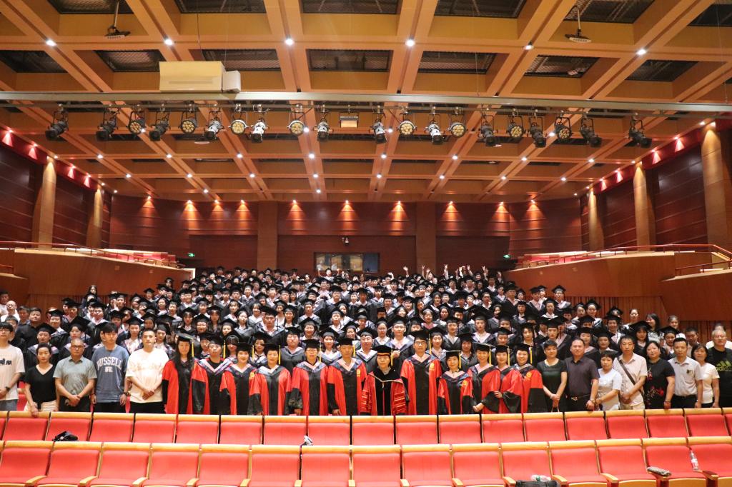 高红菊宣读毕业资格审查情况及学士学位授予决定。学生代表为感谢学院领导及老师的悉心培养和谆谆教导,深情献歌《老师,我总是想起你》,全体毕业生现场齐声高喊“老师辛苦了,我们爱您”。