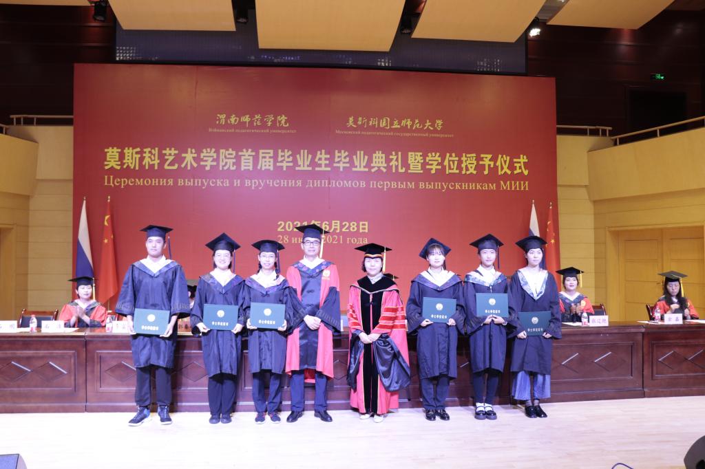 孟波代表学院向首届毕业生表示祝贺和真诚的祝福,向为毕业生成长成才辛勤付出的老师、家长致以诚挚的感谢和崇高的敬意。他回顾了四年来best365与莫斯科国立师范大学加强协作,精心培育服务国家“一带一路”倡议的专业能力强、具有国际视野的艺术人才和教育人才所取得的成效,莫斯科艺术学院2021届253名毕业生全部顺利毕业,取得两校学士学位证书,71名学生将赴国内外高校攻读硕士研究生,继续攀登更高的学术之峰。他深情寄语毕业生们要坚定理想,坚持实干,坚守底线。