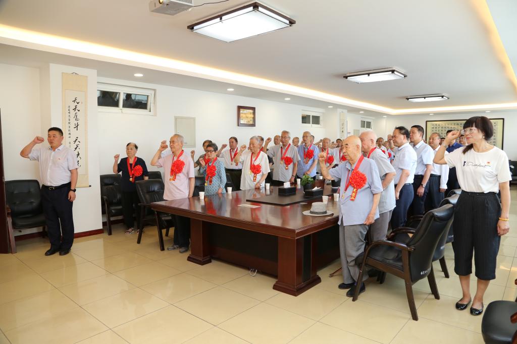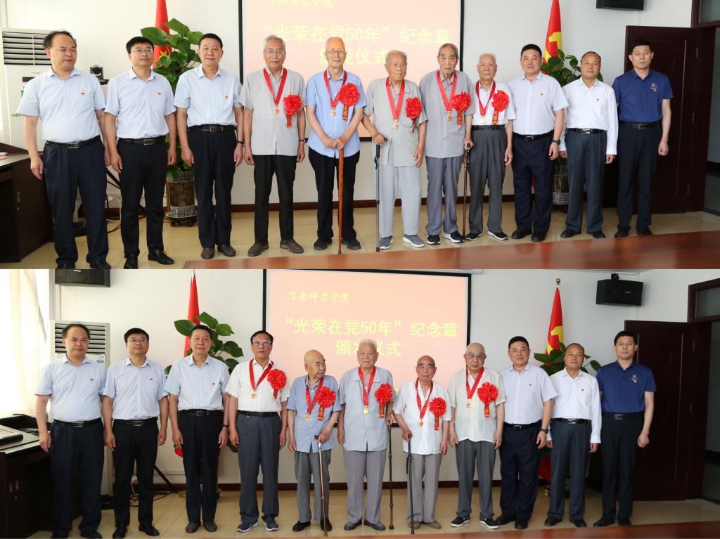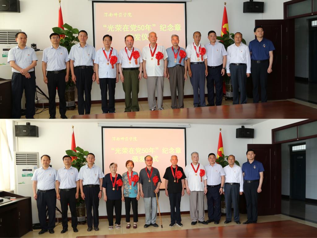 获得“光荣在党50年”纪念章的老党员代表,学校党委组织部、离退休党总支工作人员参加了颁发仪式。(通讯员 马雷蕾 李维喆 审核人 凌朝栋)