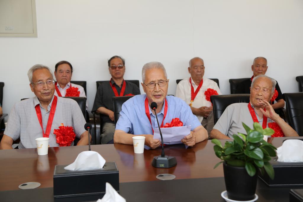 老党员代表雷德志、付自善、冯允中3位同志分享了他们的入党经历,讲述了在党的教育、培育和关怀下所做的工作和取得的成绩,深切表达了坚定不移跟党走,继续发挥光和热,为学校发展贡献力量的信心和决心。