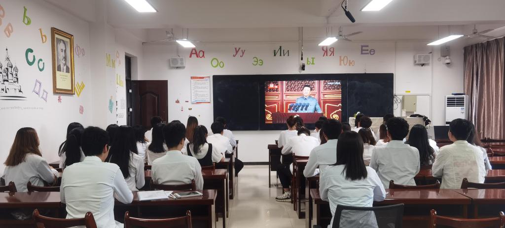 各党总支、各单位师生收看大会盛况现场