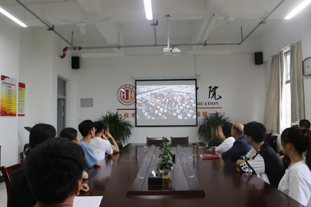 学校党委委员和机关党委下属各部门人员收看大会盛况现场